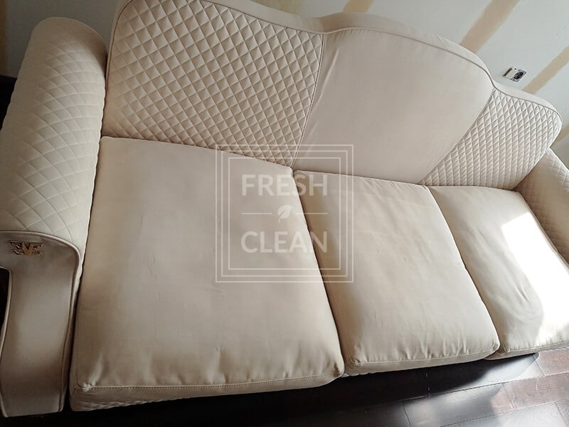 Клиентка осталась довольна нашей работой, ей понравился обновленный диван – чистый, свежий и белоснежный. Результат так обрадовал, что она заказала нам чистку еще одного дивана в ее доме. О том, как мы почистили ее замшевый диван, читайте здесь.