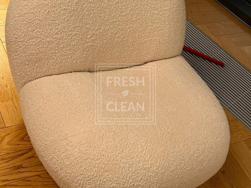 Специалист Fresh Clean оперативно выехал на место происшествия, взяв с собой несколько видов пятновыводителей. К счастью, клиент не стал сам замывать кресло, что помогло нам удалить пятно и запах полностью.