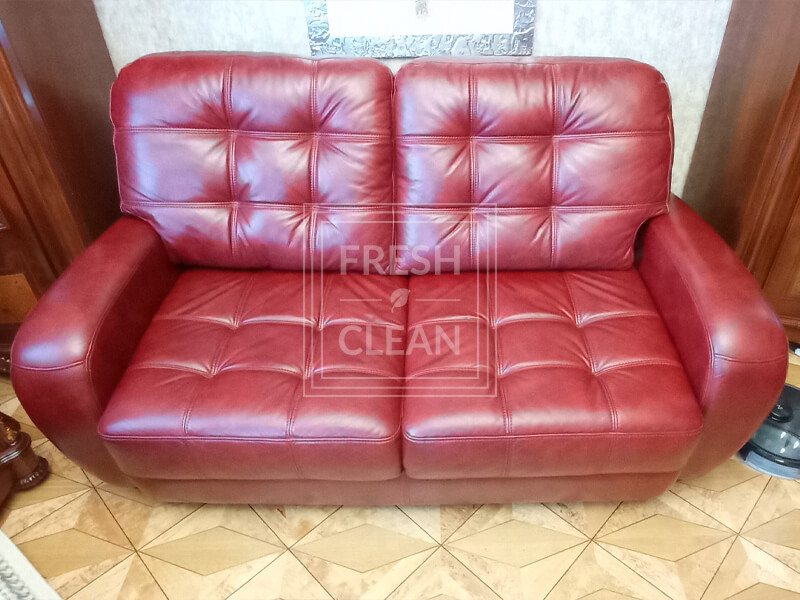 Точная история кожаного вишневого дивана производства фабрики «8 Марта» неизвестна: он достался текущему владельцу в подарок при покупке квартиры. В целом диван был в очень хорошем состоянии. Но, что вполне естественно, перед использованием новый владелец захотел провести его чистку. «Мало ли кто на нем сидел».
