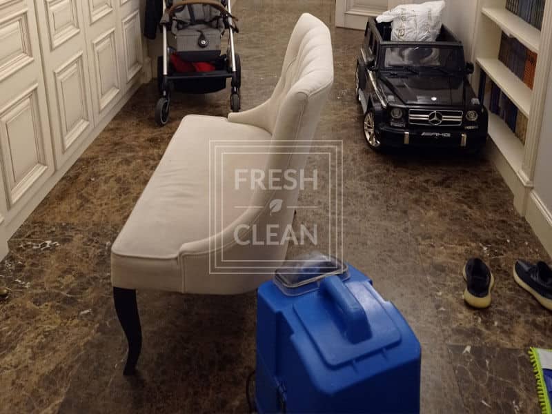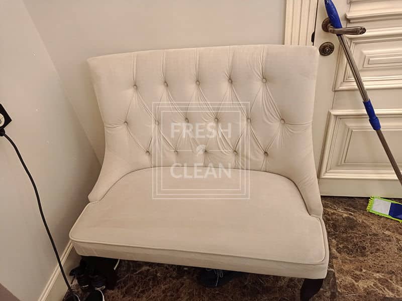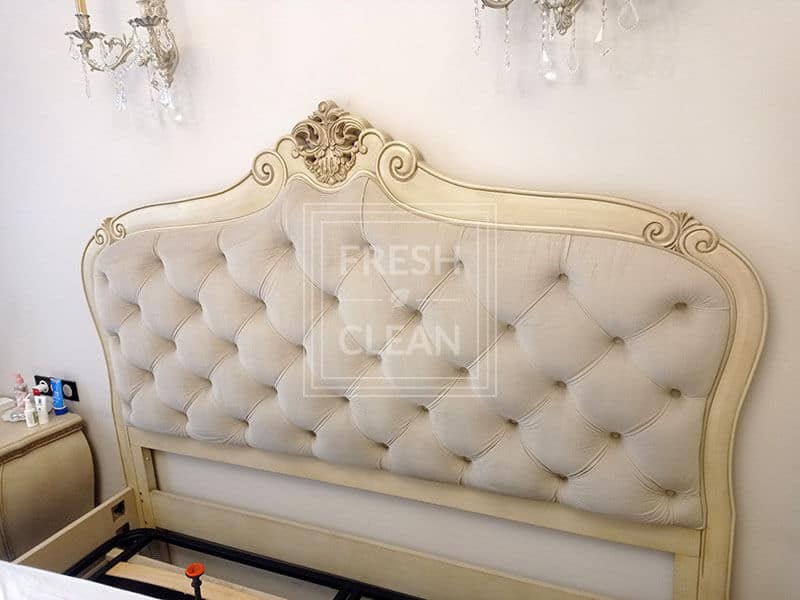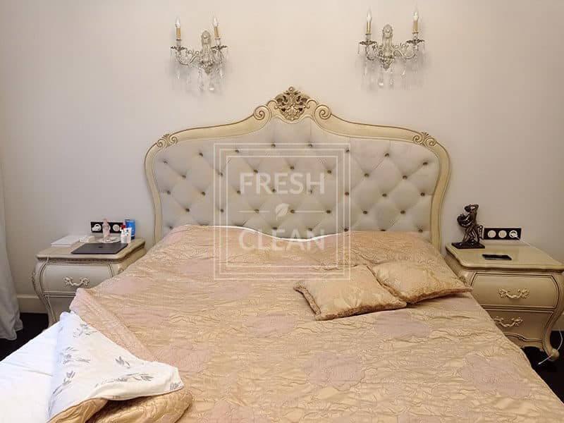 Клиентка обратилась во Fresh Clean с просьбой почистить банкетку в прихожей. Светлая банкетка бежевого цвета была испачкана гуталином и следами от обуви. Мастер полностью удалил все имеющиеся пятна. Результат так понравился заказчице, что она дополнительно попросила провести чистку изголовья кровати. В 90% случаев изголовье кровати испачкано сальными пятнами от соприкосновения с головой спящего. Специалист Fresh Clean с легкостью отчистил эти темные разводы, удалил с помощью пятновыводителя прочие обнаруженные загрязнения и сделал антибактериальную обработку обивки в подарок.