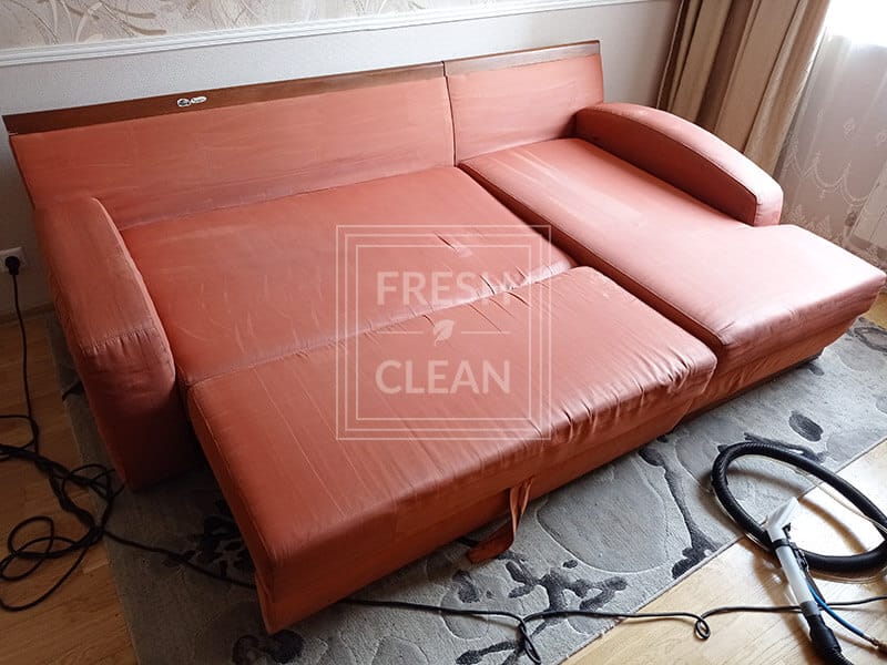 Этот кейс мы называем историей дивана-хамелеона. Потому что даже мастер Fresh Clean удивился, когда увидел какого же цвета изначально была обивка этого предмета обстановки!