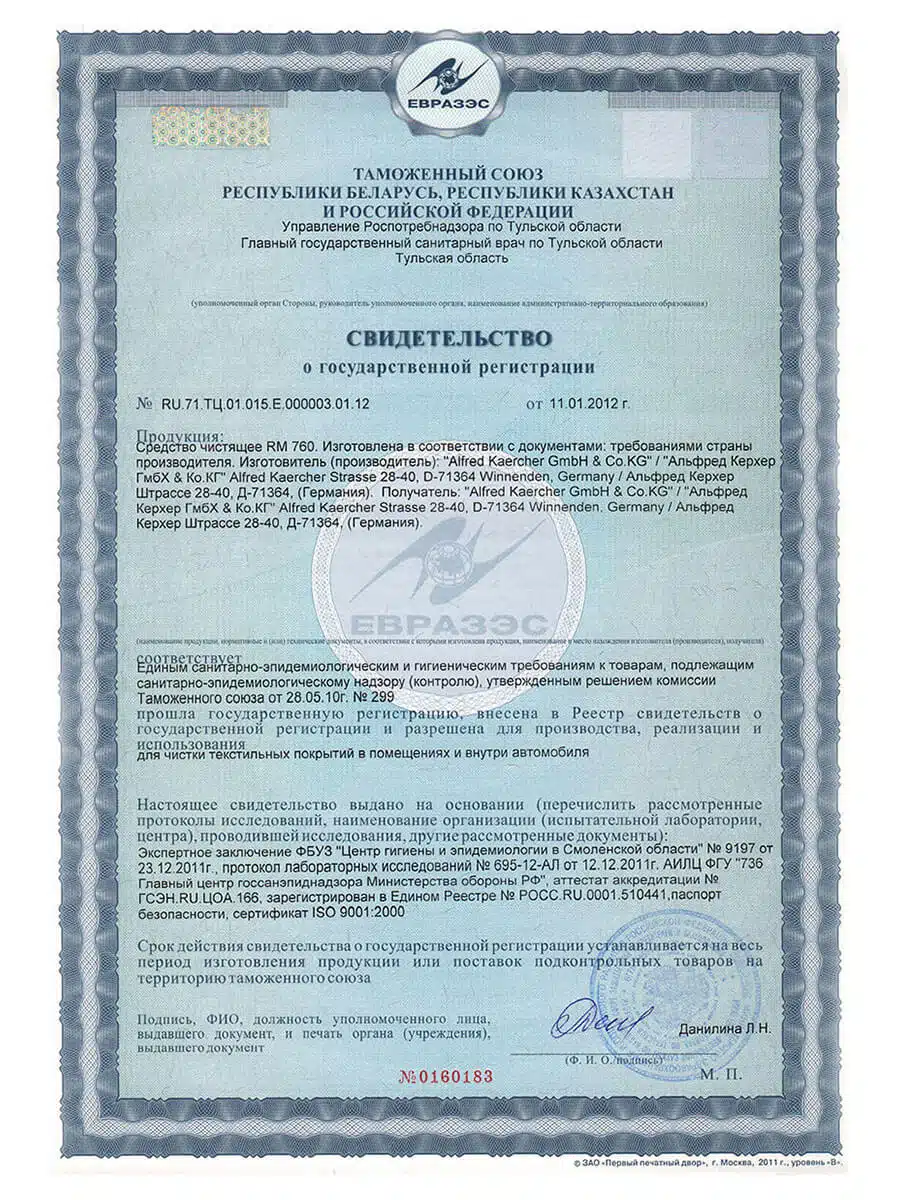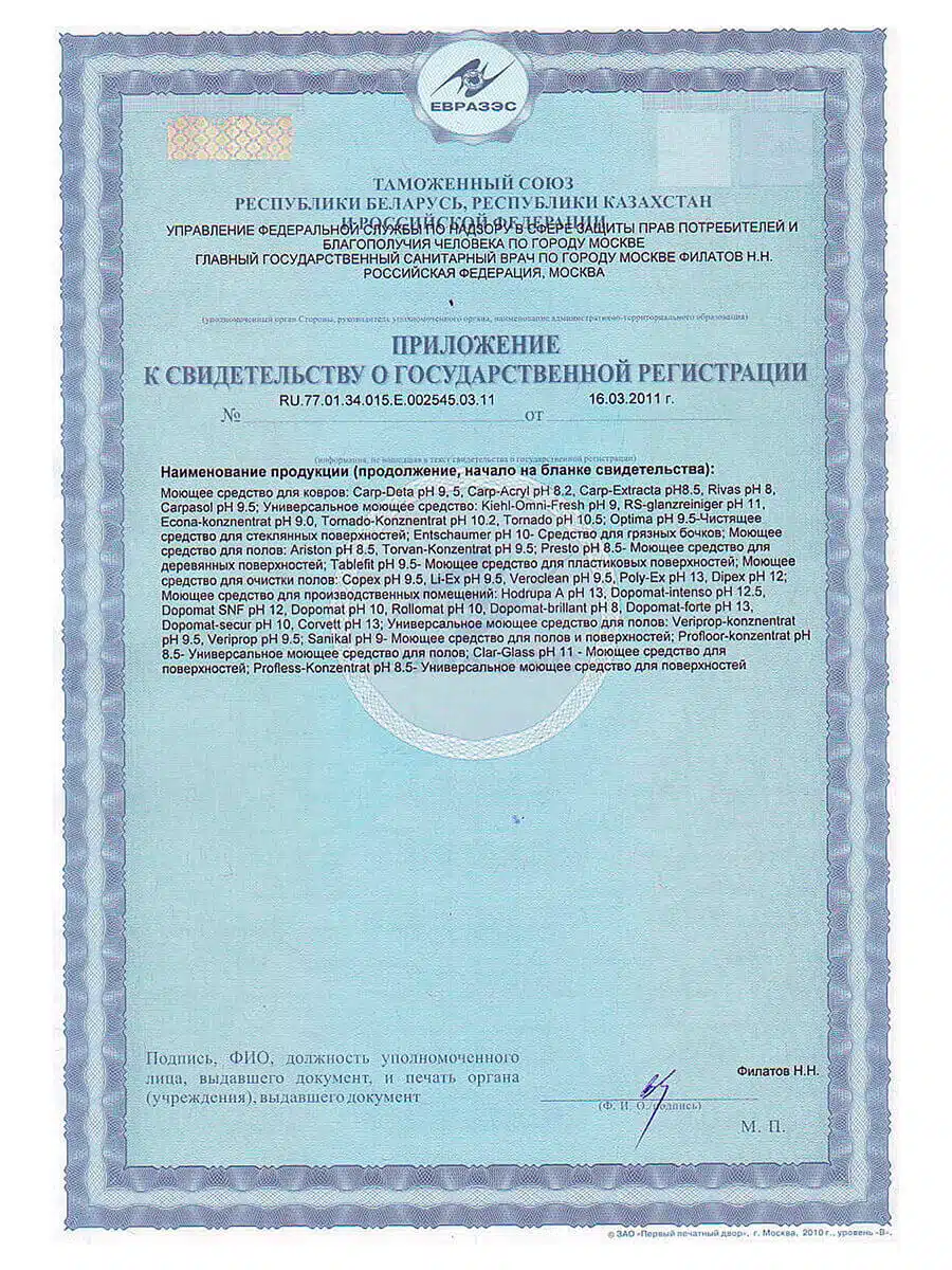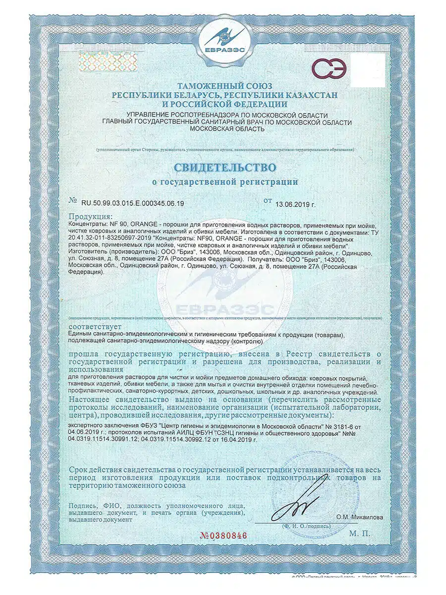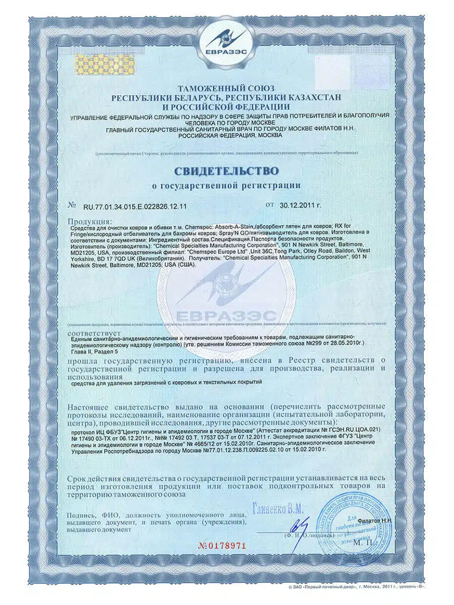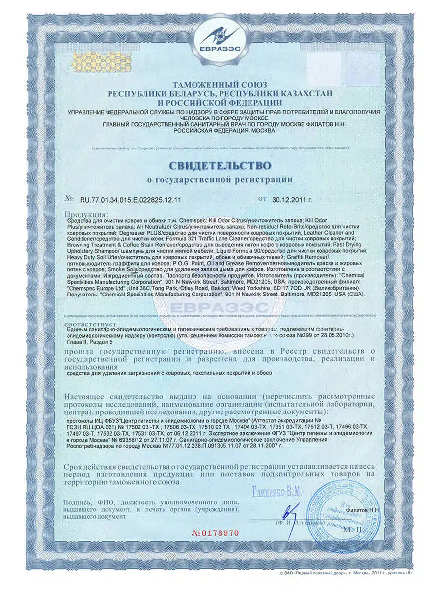 В работе используем только сертифицированные Роспотребнадзором чистящие средства! С их свидетельствами о государственной регистрации вы можете ознакомиться на данной странице.